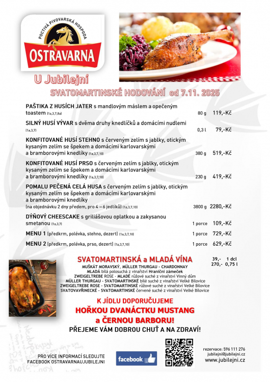 I tento rok si u nás pochutnáte na Svatomartinských husích specialitách a vínech. A už známe i ceny a sortiment vín! Tentokrát už od 7.listopadu. #OstravarnaUJubilejni Vaše poctivá pivovarská hospoda
